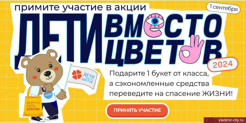 В 2024 году благотворительный фонд «Алёша» в 11-й раз проводит всероссийскую акцию «Дети вместо цветов». Эта инициатива объединяет учителей, учеников и их родителей со всей России. В 2023 году в проекте приняли участие 1400 школ из 610 городов и сёл страны.