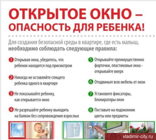 - не держите окна открытыми, по возможности открывайте их только в режиме проветривания, осуществляя постоянный контроль за действиями ребенка;