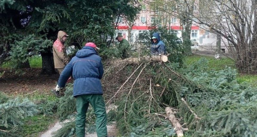 Ветром в городе повалено несколько деревьев на ул. Красноармейской, Диктора Левитана, Мира, в том числе голубая ель в районе дома № 42 по Октябрьскому проспекту. - сообщают в пресс-службе городской администрации. Некоторые из упавших деревьев повредили электрические провода.